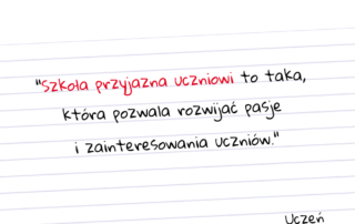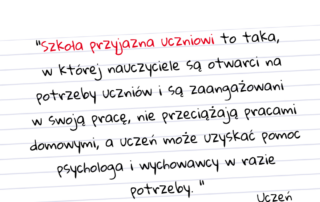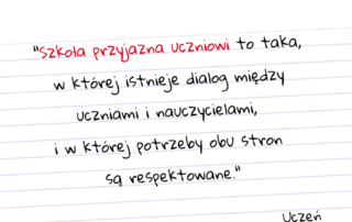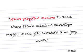 Co oznacza dla Ciebie określenie „szkoła przyjazna uczniowi”? To są niektóre odpowiedzi uczniów z ankiety na temat oczekiwań wobec szkoły ponadpodstawowej. Materiał do przemyśleń…